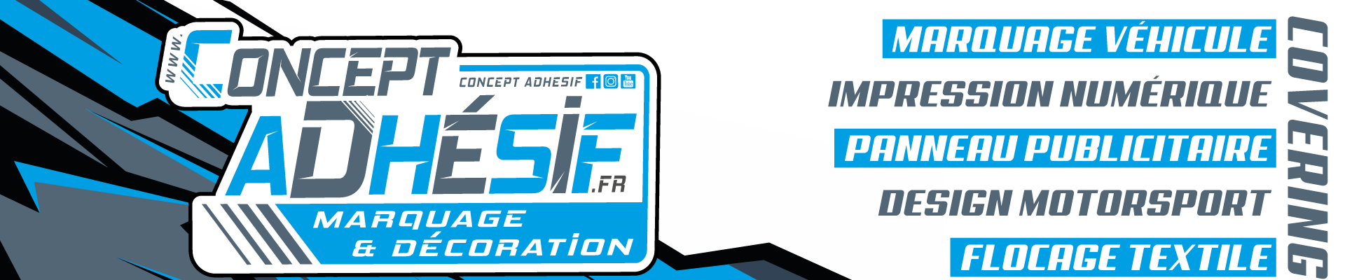 A votre service depuis 2014, la société Concept-Adhésif dirigée par Laurent DEPLATIERE est une petite structure en plein développement. Nous nous efforçons à mettre notre créativité et nos compétences en œuvre afin de vous accompagner dans la création, la conception et réalisation de tout vos projets !